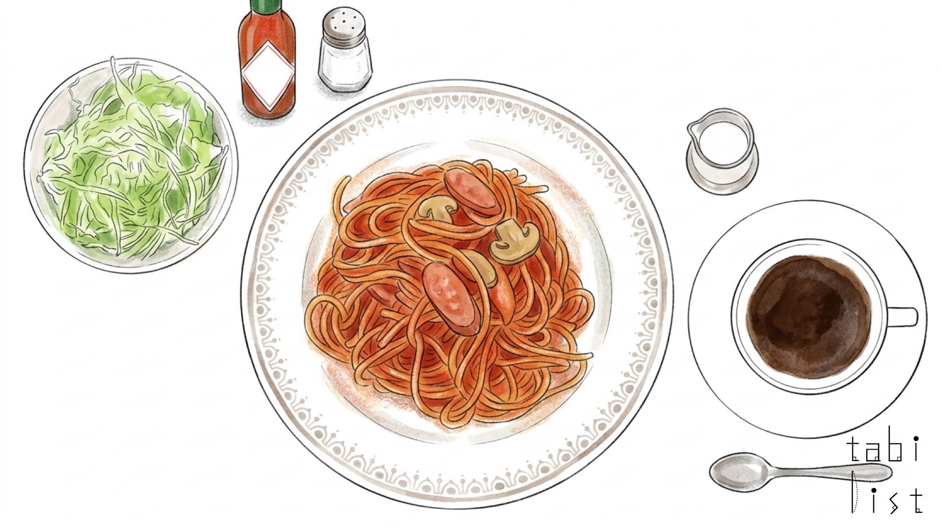 珈琲館 古城でぜひ味わっていただきたいのは、オレンジとチョコレート、ラムの香りが織りなす大人の味わいのカフェ・キャリオカです。 甘さを抑えたクリームとコーヒーのバランスが絶妙で、心安らぐひとときを届けてくれます。 また、注文を受けてから一つひとつ丁寧に焼き上げる玉子サンドも、長年の人気を誇る一品です。 ほかほかの玉子焼きがしっとりとした食パンに優しく挟まれ、その絶妙な塩加減は、多くのお客様を魅了しています。 昔ながらの味わいが楽しめるナポリタンも、幅広い世代のお客様に愛されているメニューの一つです。 ケチャップの風味豊かな懐かしい味わいは、お店の雰囲気にぴったりと寄り添い、ホッと一息つける穏やかな時間を与えてくれます。 その他にも、様々な種類のサンドイッチやパスタ、そして色とりどりのパフェなど、心ときめくメニューが豊富に揃っています。