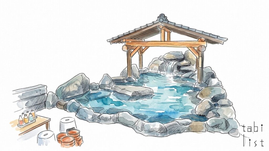 このお宿の一番の特徴は、日本名湯百選にも選ばれている菊池温泉の泉質です。源泉かけ流しのお湯は、薄めたり沸かしたりしていないアルカリ性単純温泉で、「とろとろ」とした肌触りが自慢です。お肌に優しく、ついつい長湯してしまうほどの心地よさがあります。神経痛や胃腸病、腰痛、肩こりなどにも良いとされています。露天風呂には、清流を眼下に望む「ほたるの湯」と「思い出の湯」があり、特に「ほたるの湯」は親子で2年の月日をかけて作られた手作りの露天風呂で、自然をモチーフにした趣が訪れる人々を和ませます。