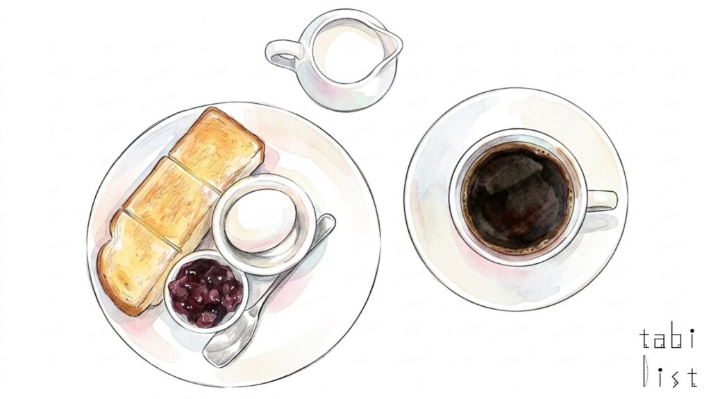 お店の名物である元祖小倉トーストは、サクッとした歯触りとふんわりとした食感の厚切りトーストに、甘さ控えめの粒あんがたっぷりと挟まれた、食べ応えのある一品です。 あんこがこぼれないようにそっといただくのがおすすめです。 また、ふっくらとした厚切りトーストにシナモンが香るシナモントーストも、コーヒーとの相性が良い人気のメニューです。 季節ごとに内容が変わるシフォンケーキもございますので、食後のデザートや午後のひとときにもぴったりです。 喉越しの良いアイスコーヒーやアイスカフェラテなども、ゆっくりと楽しむことができます。