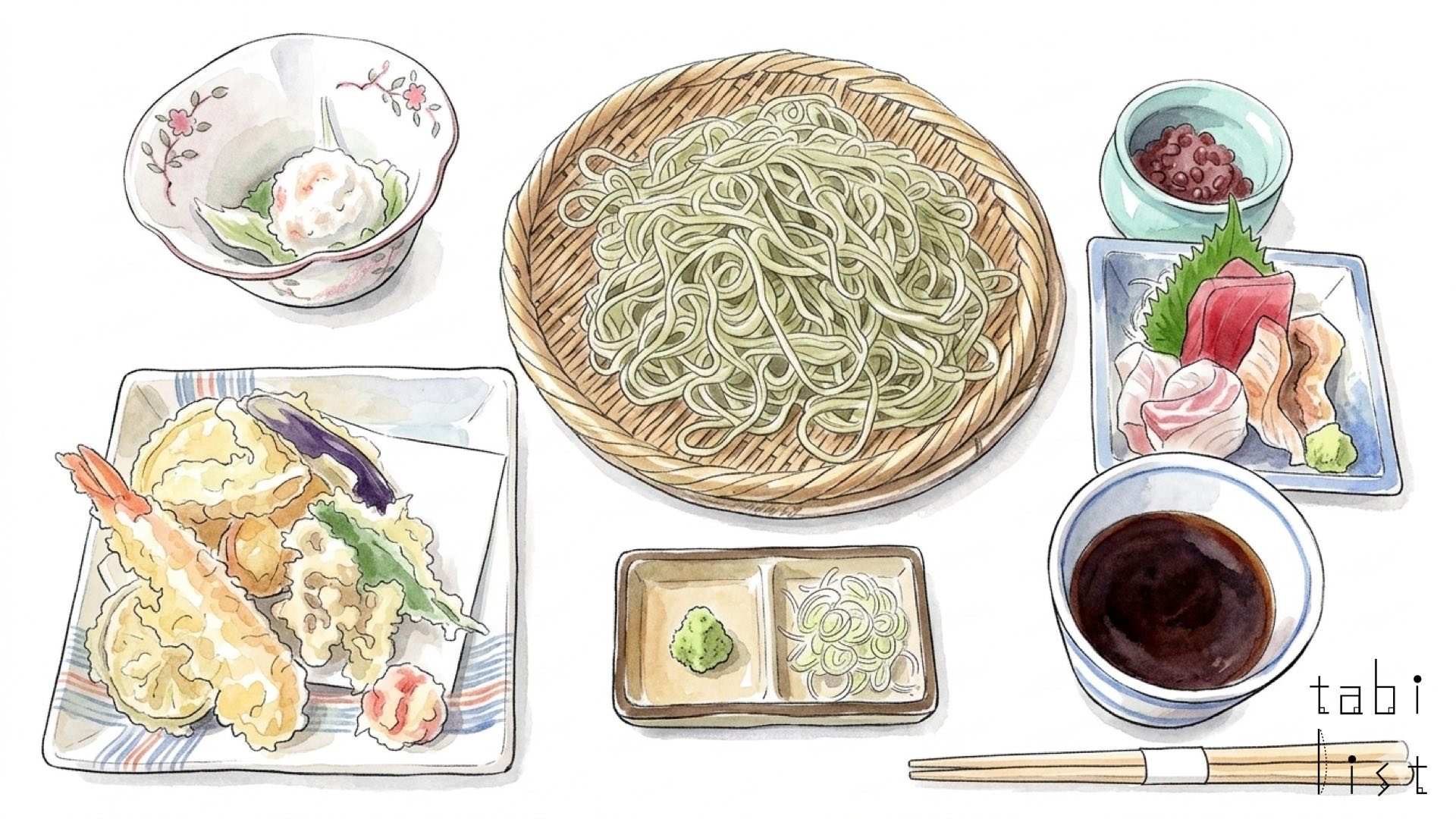 訪れる人の多くが、まずその香りの高さに驚くのが、看板メニューのせいろそばです。運ばれてきた瞬間、蕎麦の芳醇な香りが鼻をくすぐり、一口含めば噛むほどに蕎麦の甘みがじんわりと広がります。つゆは、厳選された鰹節から丁寧に出汁をとり、時間をかけて寝かせた「かえし」を合わせたもので、蕎麦の風味を邪魔することなく、むしろその旨味をさらに引き立てる深みのある味わいです。最後に提供される白濁した濃厚な蕎麦湯をつゆに注げば、出汁の香りが再び立ち上がり、最後の一滴まで贅沢な余韻を楽しむことができます。