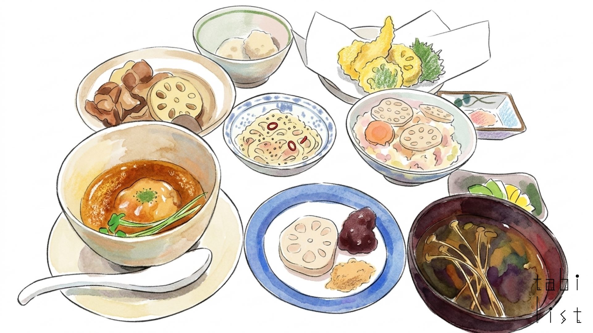 このお店の最大の特徴は、市場にほとんど出回らない希少な「門真蓮根」を、生産者直営ならではの贅沢さで堪能できる点にあります。門真のレンコンは、一般的なものに比べて非常に粘り気が強く、熱を通すともっちりとした独特の食感に変わるのが魅力です。お店には、かつて奈良の春日大社へ灯籠を寄付して「御用提灯」を授かったという、門真のレンコン売りにまつわる勇ましくも温かな民話が伝わっており、食事とともに郷土の歴史に触れることができます。現在は完全予約制となっており、店主がその日に掘り出したばかりの最高の状態のレンコンを、素材の個性を活かしたコース仕立てで提供しています。