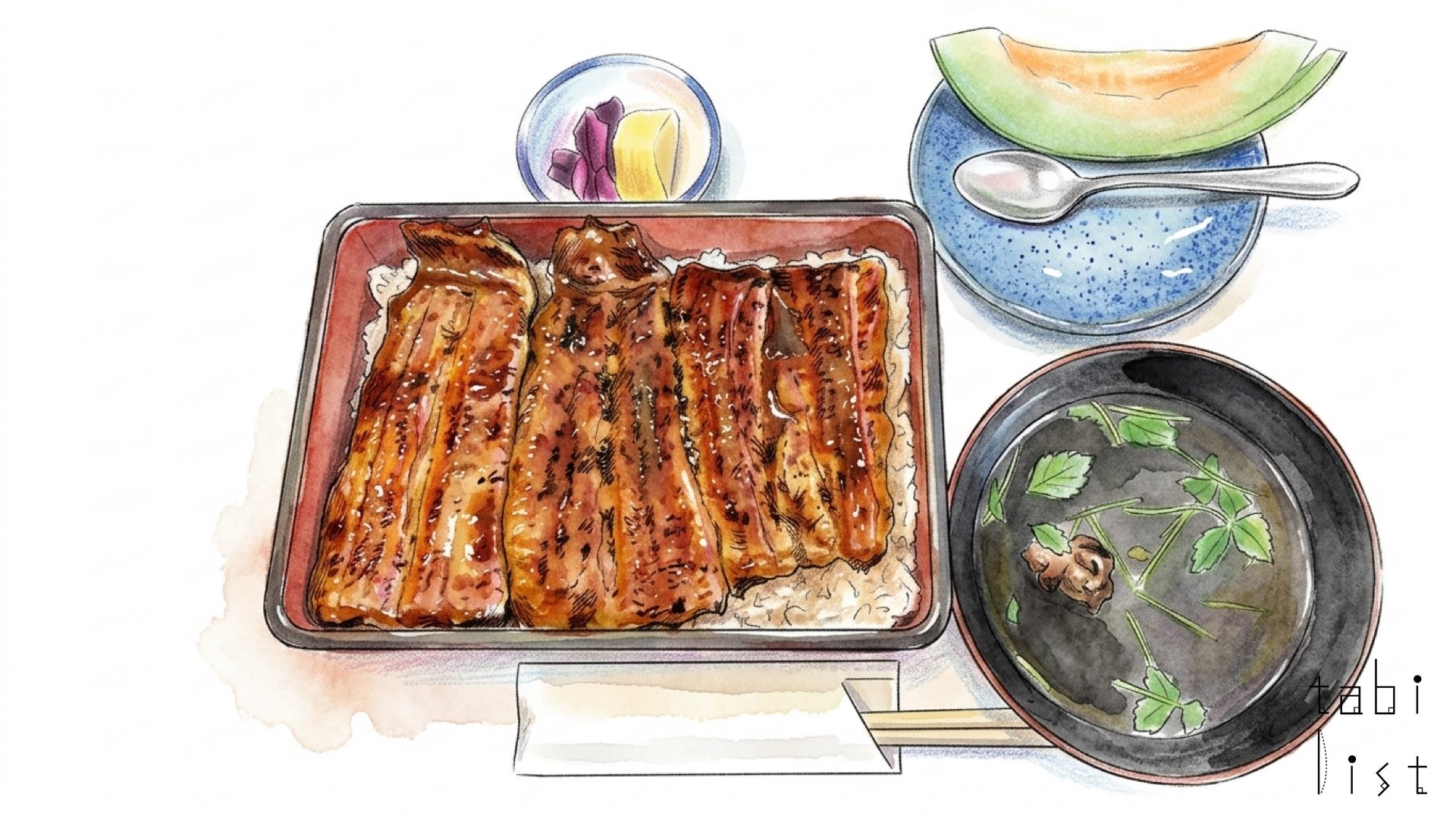 このお店の大きな特徴は、うなぎの身を蒸してから焼き上げる関東風の調理法を採用している点です。一度蒸し上げることで余分な脂が落ち、驚くほどふっくらと柔らかな食感に仕上がります。さらに、焼きの工程では創業以来継ぎ足されてきた秘伝のタレを使い、炭火の香ばしさをまとわせながら丁寧に焼き上げていきます。このタレは、うなぎの旨みが溶け込んだ深みのある味わいで、甘すぎず辛すぎない絶妙なバランスが、炊きたての白いご飯の美味しさを最大限に引き出しています。