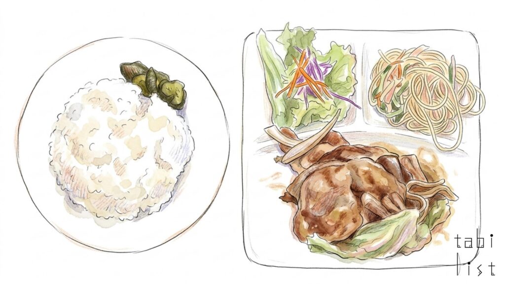 朝の時間帯に訪れるなら、種類豊富なモーニングセットに目を向けたくなります。手頃な価格ながら満足感のある内容で、一日のスタートにちょうどよいボリュームです。なかでも人気を集めているのがダブルセットで、目玉焼きとスクランブルエッグなど、好みに合わせて2品を組み合わせて楽しめます。朝からしっかりと食事をとりたいときにも頼もしい存在です。