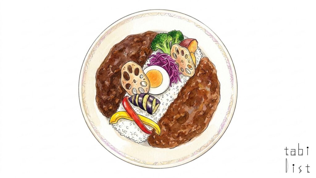人気の一皿として多くの人が選ぶのがハンバーグのスープカレーです。ふんわりと焼き上げられたハンバーグはやわらかく、口の中でほどけるような食感が印象に残ります。あふれる肉の旨みがスープと混ざり合い、満足感のある味わいにまとまります。また、じっくりと火を通したチキンのスープカレーも好評で、骨からほろりと外れるやわらかさと、スープをしっかり含んだ深い味わいが楽しめます。