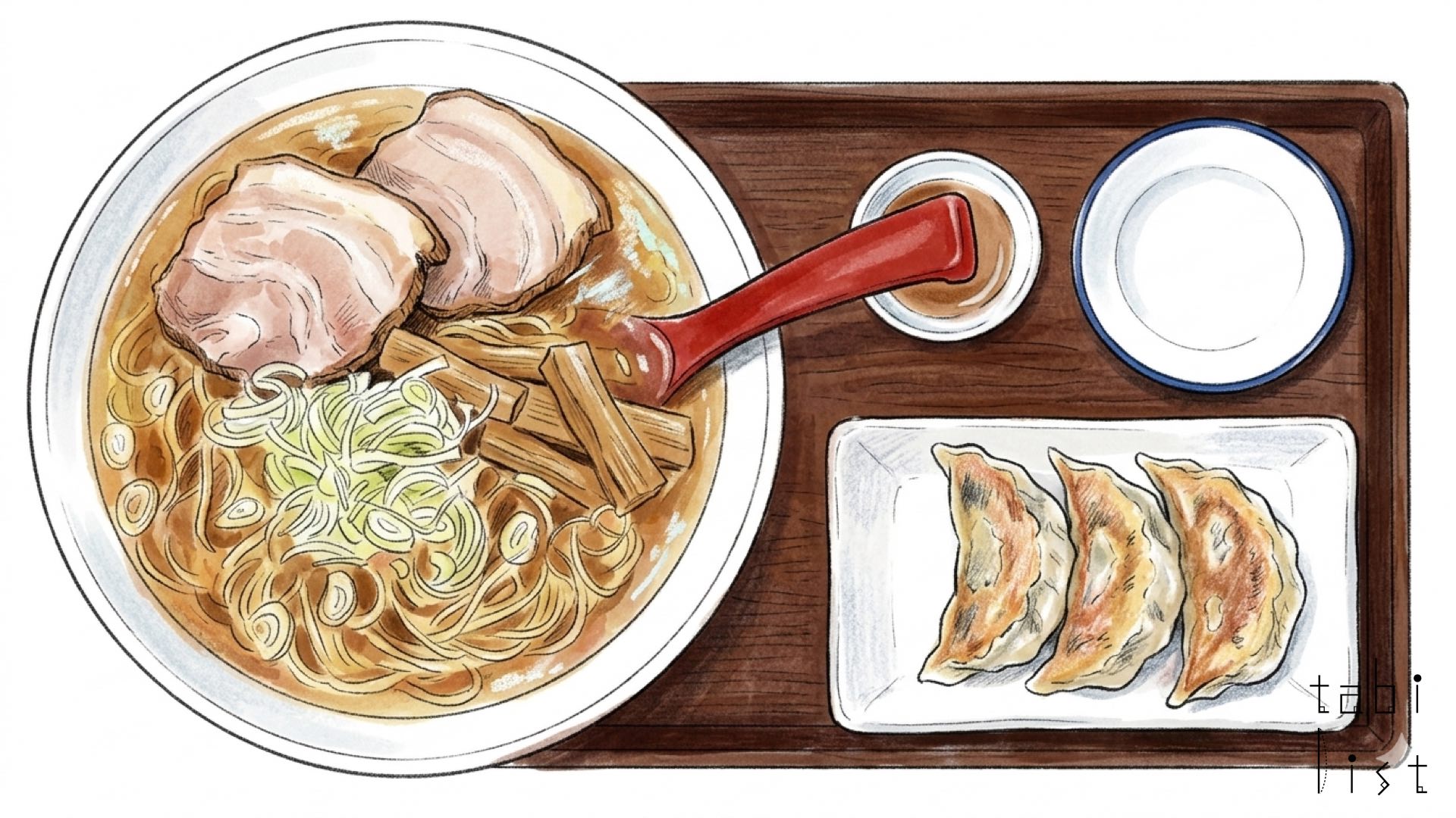 ラーメンと一緒に楽しみたいのが餃子です。香ばしく焼き上げられた皮はパリッと軽やかで、具材の旨みがしっかりと感じられます。あっさりとしたスープとの相性もよく、思わず箸が進みます。