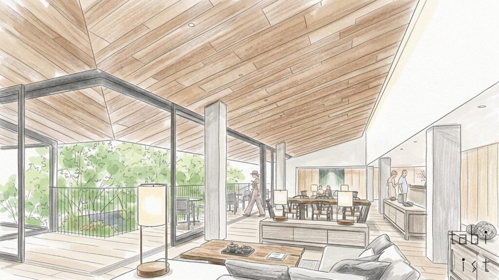 お部屋の種類はツインやダブルを中心に12タイプが用意されており、旅の目的に合わせてお選びいただけます。リゾート感あふれる屋外テラスが付いたお部屋や、広々とした角部屋のプレミアムコーナーツインなど、それぞれに趣が異なります。どのお部屋も、旅の時間をより豊かにする充実したアメニティが自慢です。基礎化粧品セットや入浴剤、ホットアイマスク、フットケアシート、ミネラルウォーター、ドリップコーヒーなど、細やかな心遣いが感じられる品々が揃っています。ホテルロビーの大きな窓からは中庭の緑が広がり、訪れるたびに異なる四季折々の表情を楽しむことができます。
