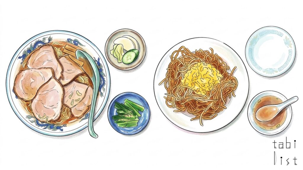 そのほかにも、訪れるたびに気になる一品がそろっています。中華スープの旨みを生かしたカレーは、やわらかなコクとすっきりした後味が印象的で、常連の方にひそかに支持されています。香ばしく仕上げられたチャーハンや五目チャーハンは、シンプルながらも飽きのこない味わいで、何度でも食べたくなる存在です。野菜をたっぷり使った餃子は、ほどよい食べごたえと軽やかさがあり、食事のお供としても相性のよい一皿です。さらに、彩りよく盛り付けられた五目焼きそばは、あっさりとした味付けで、さっぱりとしたものを求めるときにちょうどよい選択です。