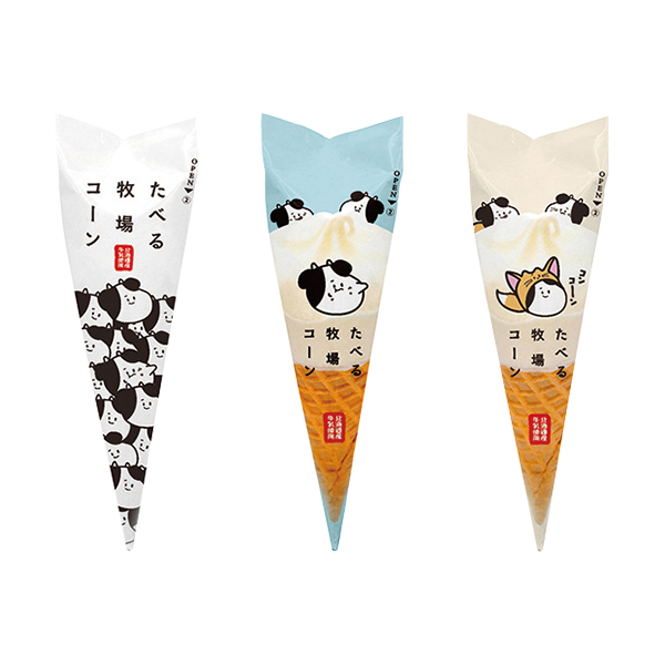 たべる牧場ミルクカップがコーンアイスになりました。アイス部分はカップアイスと同様に牛乳56%使用し、コーン部分には小麦粉の一部に全粒粉を使用しています。